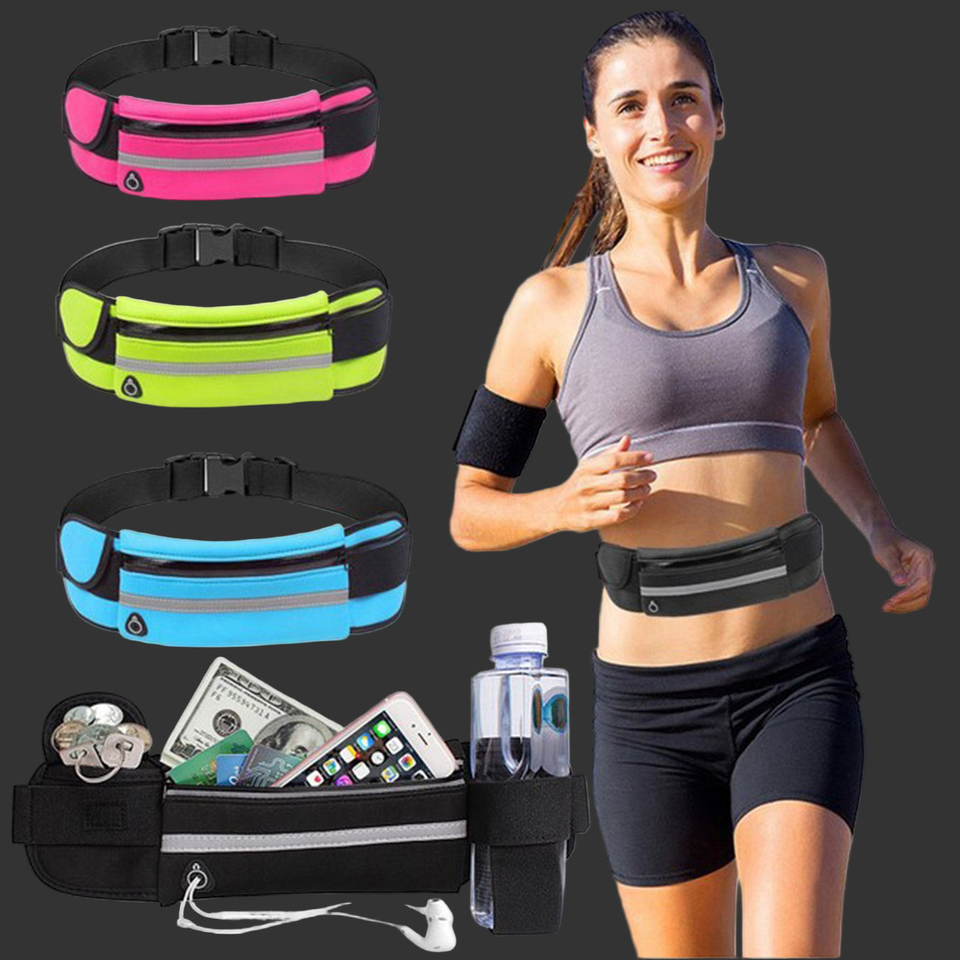 Marsupio sportivo uomo/donna in neoprene cintura corsa impermeabile unisex con strisce riflettenti e cinturino regolabile. Il marsupio running è re...