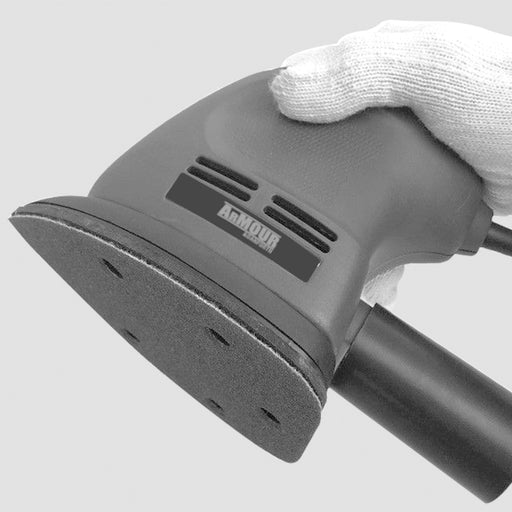 PALMARETensione:230V-50HzPotenza: 105W Vibrazioni: 12000rpm Piastra levigatura:140x140x80mm fornita con carta abrasiva . Impugnatura superiore s...