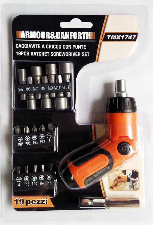 SET COMPOSTO DA 19 PEZZI CACCIAVITE CRICCHETTO 1 cacciavite a cricchetto a 3 vie1 Supporto bit 7 dado metrico: 5-6-7-8-9-10-11 mm11 Inserti in CR-...