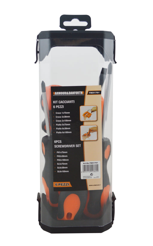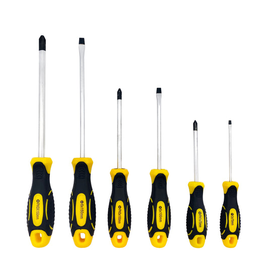 6PEZZI CACCIAVITE ASSORTITI IMPUGNATURA SOFT GRIP PER UNA PRESA ULTRASICURA E ANTISCIVOLO MISURE:PH2*38mmSL6*38mmPH1*75mmSL5*75mmPH2*100mmSL6.5*100mm"